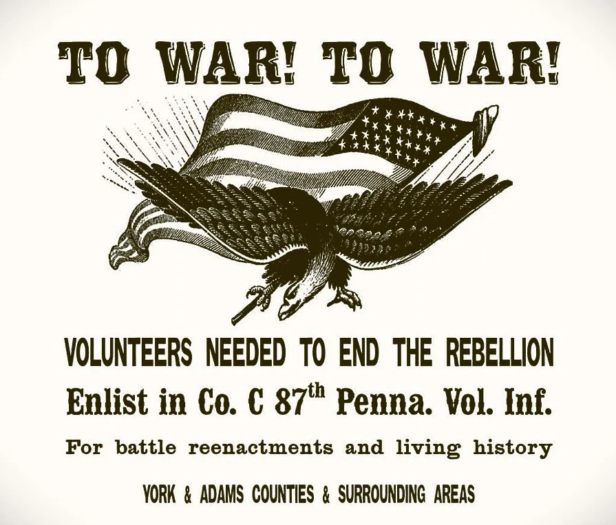 The 87th Regiment Pennsylvania Volunteer Infantry Company C is a member of 1st Regiment, Federal Volunteer Brigade. We are based in York County, PA, but draw members from all over south central Pennsylvania and northern Maryland.